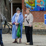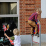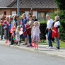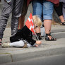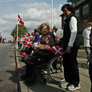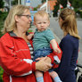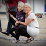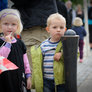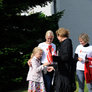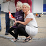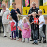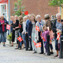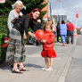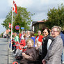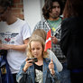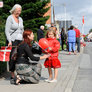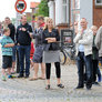 Vagtskiftet ved Marselisborg Slot skærtorsdag kl. 12 tiltrak mange fremmødte, mens politiets indsatsleder undervejs tog sig tid til at besvare spørgsmål fra en nysgerrig dreng.