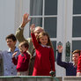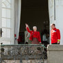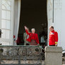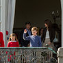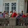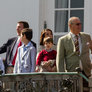 Lidt over kl 12 kom Dronningen Margrethe kom ud på terrassen, sammen med Prins Henrik og Prins Joakim, Prinsesse Marie, Prins Nicolai, Prins Felix og Prins Henrik. Kronprins Frederik, prinsesse Mary, Prins Christian, Prinsesse Isabella, tvillingerne Prins Vincent og Prinsesse Josefine. Der blev sunget fødselsdags sange og råbt lykønskninger til hende. Der var mødt rigtig mange mennesker op på plænen i Marselisborgs Slots have. Der var en familie fra Tyskland der var kørt hele vejen op til DK for at være med til at fejre Dronningens 74 års fødselsdag.