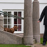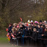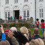 Vagtskiftet ved Marselisborg Slot skærtorsdag kl. 12 tiltrak mange fremmødte, mens politiets indsatsleder undervejs tog sig tid til at besvare spørgsmål fra en nysgerrig dreng.