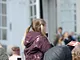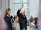 Vagtskiftet ved Marselisborg Slot skærtorsdag kl. 12 tiltrak mange fremmødte, mens politiets indsatsleder undervejs tog sig tid til at besvare spørgsmål fra en nysgerrig dreng.