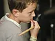 Vagtskiftet ved Marselisborg Slot skærtorsdag kl. 12 tiltrak mange fremmødte, mens politiets indsatsleder undervejs tog sig tid til at besvare spørgsmål fra en nysgerrig dreng.