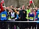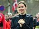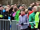 Vagtskiftet ved Marselisborg Slot skærtorsdag kl. 12 tiltrak mange fremmødte, mens politiets indsatsleder undervejs tog sig tid til at besvare spørgsmål fra en nysgerrig dreng.