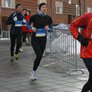 Find lettest dig selv: Billederne er taget kort før mål. Læg din sluttid til starttidspunktet (11:07 for 10 km og 11:12 for 5 km) og sammenlign det med tidspunktet over billedet.