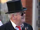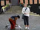 Vagtskiftet ved Marselisborg Slot skærtorsdag kl. 12 tiltrak mange fremmødte, mens politiets indsatsleder undervejs tog sig tid til at besvare spørgsmål fra en nysgerrig dreng.