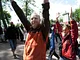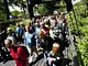 Vagtskiftet ved Marselisborg Slot skærtorsdag kl. 12 tiltrak mange fremmødte, mens politiets indsatsleder undervejs tog sig tid til at besvare spørgsmål fra en nysgerrig dreng.