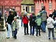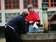 Vagtskiftet ved Marselisborg Slot skærtorsdag kl. 12 tiltrak mange fremmødte, mens politiets indsatsleder undervejs tog sig tid til at besvare spørgsmål fra en nysgerrig dreng.
