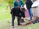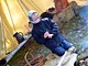 Vagtskiftet ved Marselisborg Slot skærtorsdag kl. 12 tiltrak mange fremmødte, mens politiets indsatsleder undervejs tog sig tid til at besvare spørgsmål fra en nysgerrig dreng.