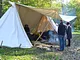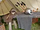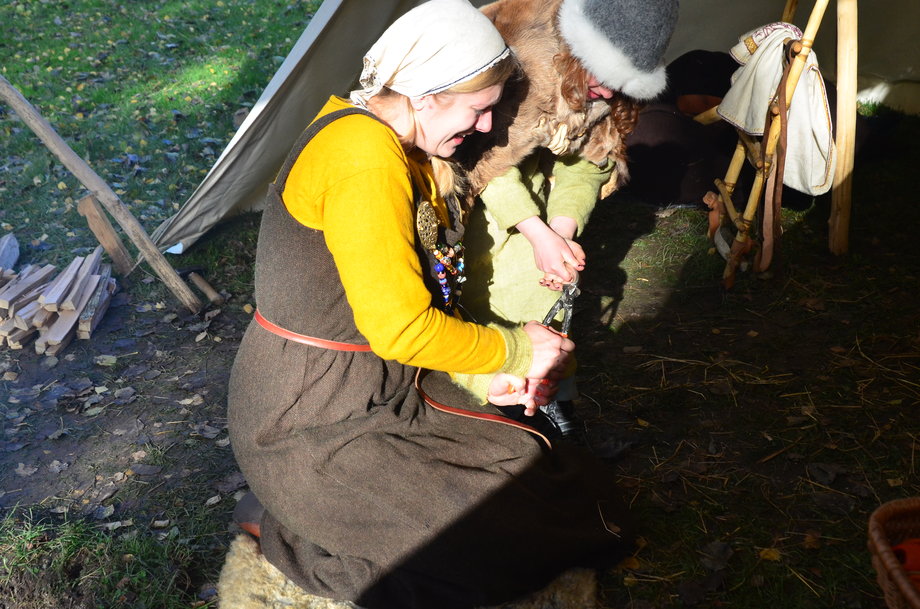 Moesgaard Museum har i efterårsferien slået en vikingelejr op. Her var der mulighed for at lave sin egen Thors hammer i tin, bage pandekager, skyde med bue og pil eller deltage i sværkamp.