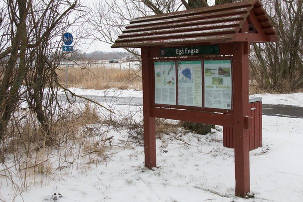 Søen fryser til. Men i de is frie områder er der fortsat et rigt fugleliv. Uanset årstiden er turen rundt om søen altid en fornøjelse.