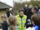 Vagtskiftet ved Marselisborg Slot skærtorsdag kl. 12 tiltrak mange fremmødte, mens politiets indsatsleder undervejs tog sig tid til at besvare spørgsmål fra en nysgerrig dreng.