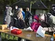 Vagtskiftet ved Marselisborg Slot skærtorsdag kl. 12 tiltrak mange fremmødte, mens politiets indsatsleder undervejs tog sig tid til at besvare spørgsmål fra en nysgerrig dreng.