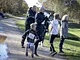 Vagtskiftet ved Marselisborg Slot skærtorsdag kl. 12 tiltrak mange fremmødte, mens politiets indsatsleder undervejs tog sig tid til at besvare spørgsmål fra en nysgerrig dreng.
