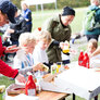 Vagtskiftet ved Marselisborg Slot skærtorsdag kl. 12 tiltrak mange fremmødte, mens politiets indsatsleder undervejs tog sig tid til at besvare spørgsmål fra en nysgerrig dreng.