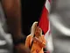 Vagtskiftet ved Marselisborg Slot skærtorsdag kl. 12 tiltrak mange fremmødte, mens politiets indsatsleder undervejs tog sig tid til at besvare spørgsmål fra en nysgerrig dreng.