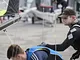 Vagtskiftet ved Marselisborg Slot skærtorsdag kl. 12 tiltrak mange fremmødte, mens politiets indsatsleder undervejs tog sig tid til at besvare spørgsmål fra en nysgerrig dreng.