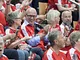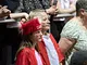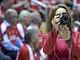 Vagtskiftet ved Marselisborg Slot skærtorsdag kl. 12 tiltrak mange fremmødte, mens politiets indsatsleder undervejs tog sig tid til at besvare spørgsmål fra en nysgerrig dreng.