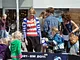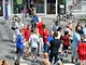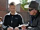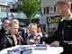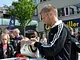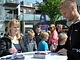 Vagtskiftet ved Marselisborg Slot skærtorsdag kl. 12 tiltrak mange fremmødte, mens politiets indsatsleder undervejs tog sig tid til at besvare spørgsmål fra en nysgerrig dreng.