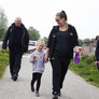 Vagtskiftet ved Marselisborg Slot skærtorsdag kl. 12 tiltrak mange fremmødte, mens politiets indsatsleder undervejs tog sig tid til at besvare spørgsmål fra en nysgerrig dreng.
