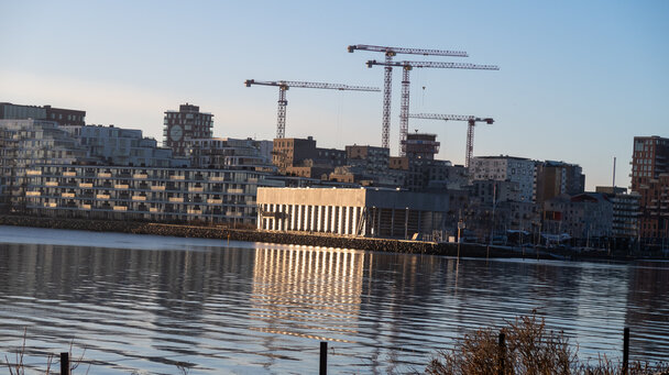 Selv om solen skinnede fra en skyfri himmel, var der ikke meget liv på havnen i denne frostklare morgen - bortset fra et par motionsløbere, 2 gæve gutter der nød deres morgenmad, samt hos fiskehandleren, der var ved at gøre klar til kunderne. Der var dog fortsat masser af byggeaktivitet.