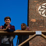 Vagtskiftet ved Marselisborg Slot skærtorsdag kl. 12 tiltrak mange fremmødte, mens politiets indsatsleder undervejs tog sig tid til at besvare spørgsmål fra en nysgerrig dreng.