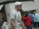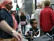 Vagtskiftet ved Marselisborg Slot skærtorsdag kl. 12 tiltrak mange fremmødte, mens politiets indsatsleder undervejs tog sig tid til at besvare spørgsmål fra en nysgerrig dreng.