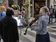 Vagtskiftet ved Marselisborg Slot skærtorsdag kl. 12 tiltrak mange fremmødte, mens politiets indsatsleder undervejs tog sig tid til at besvare spørgsmål fra en nysgerrig dreng.