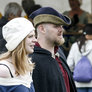 Vagtskiftet ved Marselisborg Slot skærtorsdag kl. 12 tiltrak mange fremmødte, mens politiets indsatsleder undervejs tog sig tid til at besvare spørgsmål fra en nysgerrig dreng.
