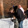 Vagtskiftet ved Marselisborg Slot skærtorsdag kl. 12 tiltrak mange fremmødte, mens politiets indsatsleder undervejs tog sig tid til at besvare spørgsmål fra en nysgerrig dreng.