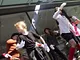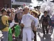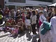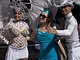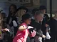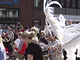 Vagtskiftet ved Marselisborg Slot skærtorsdag kl. 12 tiltrak mange fremmødte, mens politiets indsatsleder undervejs tog sig tid til at besvare spørgsmål fra en nysgerrig dreng.