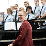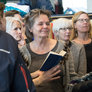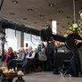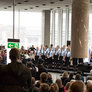 Et gigantisk børnekor fyldte Bispetorv med smukke toner imens regnen silede ned. Børnene blev akkompagneret af Aarhus Jazz Orchestra.