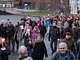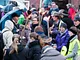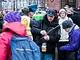 Vagtskiftet ved Marselisborg Slot skærtorsdag kl. 12 tiltrak mange fremmødte, mens politiets indsatsleder undervejs tog sig tid til at besvare spørgsmål fra en nysgerrig dreng.
