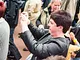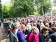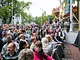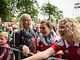 Vagtskiftet ved Marselisborg Slot skærtorsdag kl. 12 tiltrak mange fremmødte, mens politiets indsatsleder undervejs tog sig tid til at besvare spørgsmål fra en nysgerrig dreng.