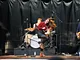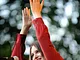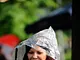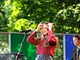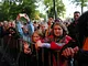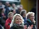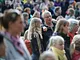 Vagtskiftet ved Marselisborg Slot skærtorsdag kl. 12 tiltrak mange fremmødte, mens politiets indsatsleder undervejs tog sig tid til at besvare spørgsmål fra en nysgerrig dreng.