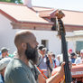 Vagtskiftet ved Marselisborg Slot skærtorsdag kl. 12 tiltrak mange fremmødte, mens politiets indsatsleder undervejs tog sig tid til at besvare spørgsmål fra en nysgerrig dreng.