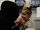 Vagtskiftet ved Marselisborg Slot skærtorsdag kl. 12 tiltrak mange fremmødte, mens politiets indsatsleder undervejs tog sig tid til at besvare spørgsmål fra en nysgerrig dreng.