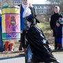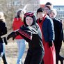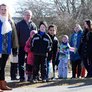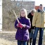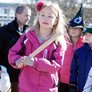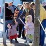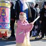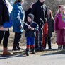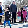 Vagtskiftet ved Marselisborg Slot skærtorsdag kl. 12 tiltrak mange fremmødte, mens politiets indsatsleder undervejs tog sig tid til at besvare spørgsmål fra en nysgerrig dreng.