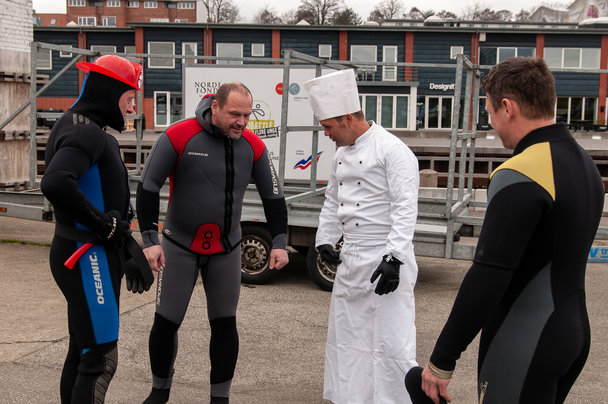 Hvorfor springer voksne mænd i havnen for at slå katten af tønden? Måske fordi de kan. Hos KVAK er de nemlig sportsdykkere. I tønden var der en lille skarp til halsen og det er jo endnu en god grund til at springe i havnen.