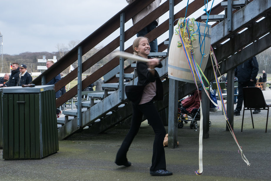 Der var fuld fart på Fastelavnsarrangementet på Jydsk Væddeløbsbane. På bare få minutter, formåede ganske få engagerede børn at slå tønden i stumper og stykker ;-)