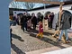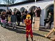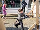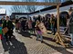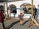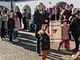 Vagtskiftet ved Marselisborg Slot skærtorsdag kl. 12 tiltrak mange fremmødte, mens politiets indsatsleder undervejs tog sig tid til at besvare spørgsmål fra en nysgerrig dreng.