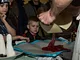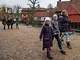 Vagtskiftet ved Marselisborg Slot skærtorsdag kl. 12 tiltrak mange fremmødte, mens politiets indsatsleder undervejs tog sig tid til at besvare spørgsmål fra en nysgerrig dreng.