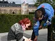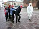 Vagtskiftet ved Marselisborg Slot skærtorsdag kl. 12 tiltrak mange fremmødte, mens politiets indsatsleder undervejs tog sig tid til at besvare spørgsmål fra en nysgerrig dreng.