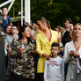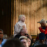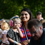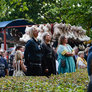 Vagtskiftet ved Marselisborg Slot skærtorsdag kl. 12 tiltrak mange fremmødte, mens politiets indsatsleder undervejs tog sig tid til at besvare spørgsmål fra en nysgerrig dreng.