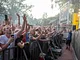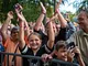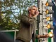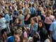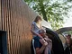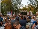 Vagtskiftet ved Marselisborg Slot skærtorsdag kl. 12 tiltrak mange fremmødte, mens politiets indsatsleder undervejs tog sig tid til at besvare spørgsmål fra en nysgerrig dreng.