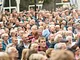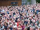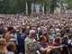 Vagtskiftet ved Marselisborg Slot skærtorsdag kl. 12 tiltrak mange fremmødte, mens politiets indsatsleder undervejs tog sig tid til at besvare spørgsmål fra en nysgerrig dreng.