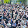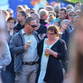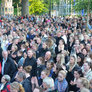 Vagtskiftet ved Marselisborg Slot skærtorsdag kl. 12 tiltrak mange fremmødte, mens politiets indsatsleder undervejs tog sig tid til at besvare spørgsmål fra en nysgerrig dreng.