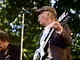 Vagtskiftet ved Marselisborg Slot skærtorsdag kl. 12 tiltrak mange fremmødte, mens politiets indsatsleder undervejs tog sig tid til at besvare spørgsmål fra en nysgerrig dreng.