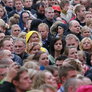 Vagtskiftet ved Marselisborg Slot skærtorsdag kl. 12 tiltrak mange fremmødte, mens politiets indsatsleder undervejs tog sig tid til at besvare spørgsmål fra en nysgerrig dreng.