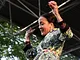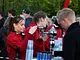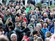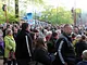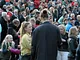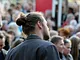 Vagtskiftet ved Marselisborg Slot skærtorsdag kl. 12 tiltrak mange fremmødte, mens politiets indsatsleder undervejs tog sig tid til at besvare spørgsmål fra en nysgerrig dreng.