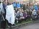 Vagtskiftet ved Marselisborg Slot skærtorsdag kl. 12 tiltrak mange fremmødte, mens politiets indsatsleder undervejs tog sig tid til at besvare spørgsmål fra en nysgerrig dreng.