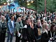 Vagtskiftet ved Marselisborg Slot skærtorsdag kl. 12 tiltrak mange fremmødte, mens politiets indsatsleder undervejs tog sig tid til at besvare spørgsmål fra en nysgerrig dreng.